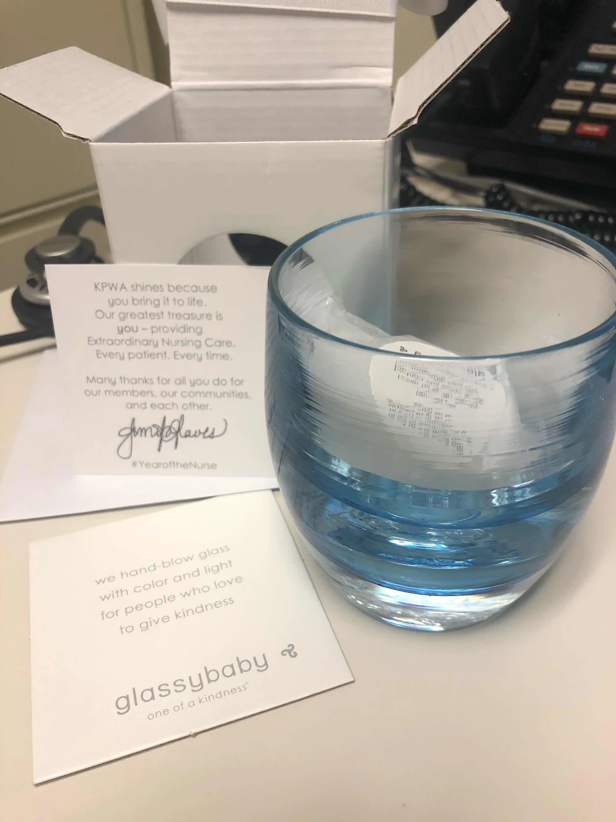 I am enjoying this Year of Nursing mainly because I am with Kaiser. Kaiser values it’s employees, see us as a asset, valuable, and with high importance. I have felt nothing but love for my new employer. Even during COVID 19 I am continually amazed at its kindness and compassion for its people and its members. For nurses week, along with cake and fruit, we each received a GlassyBaby votive holder. It is beautiful and reminder me why we do this, who started this, and the reason why we want to shine our lamps so brightly. Florence Nightingale is a truly spectacular person and every time I light my candle I will think of her!